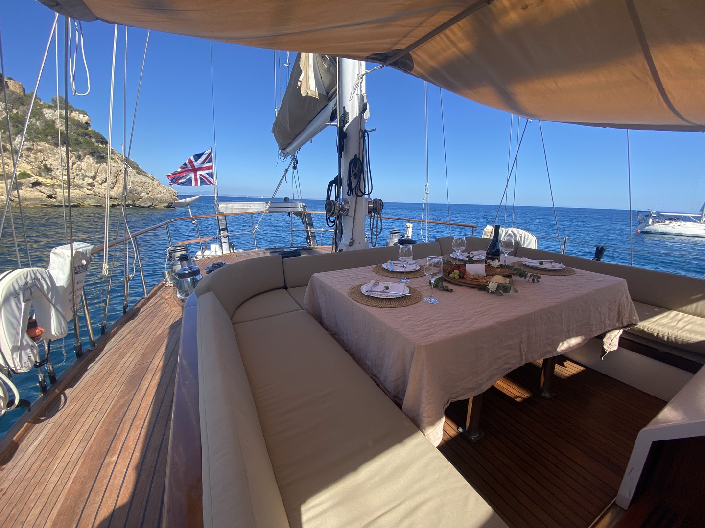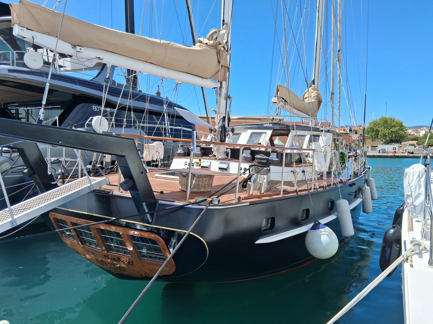 SV Iron Monkey is a well-presented sailing yacht with a spacious cockpit, comfortable deck areas, and safe, easy movement around the boat. Below deck she offers a welcoming saloon, a practical galley for onboard meals, and comfortable cabins for overnight stays — an ideal setup for relaxed cruising and time at anchor.